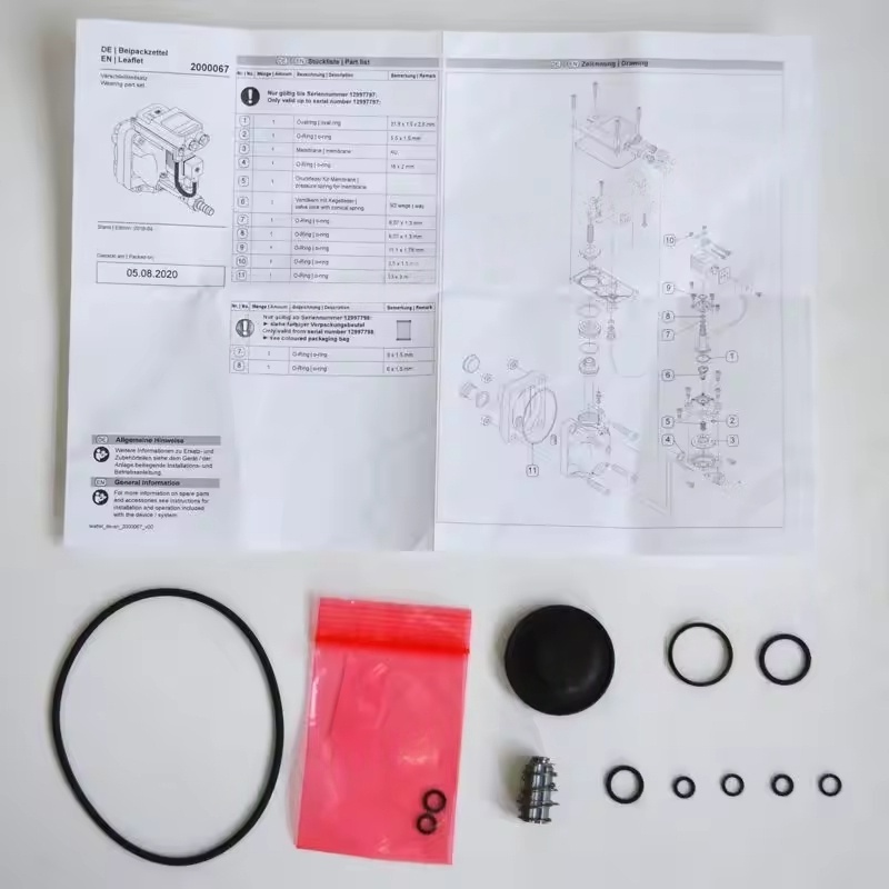 आमतौर पर, इस तरह की किट इलेक्ट्रोमैग्नेटिक वाल्व की संरचनात्मक विशेषताओं के आधार पर डिज़ाइन की जाती हैं, और निम्नलिखित प्रमुख घटकों (मूल कारखाने के कॉन्फ़िगरेशन के अधीन) शामिल हैं: