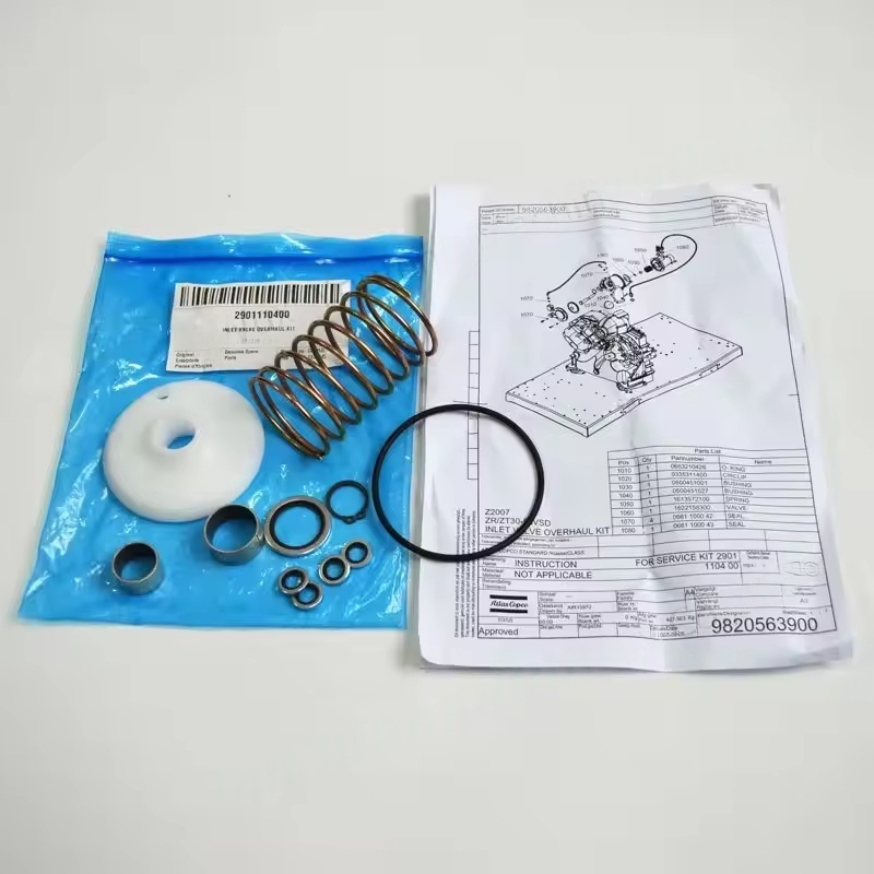 सेवन वाल्व एयर कंप्रेसर की हवा के सेवन की मात्रा को नियंत्रित करने वाला मुख्य घटक है। यह वाल्व खोलने को समायोजित करके लोडिंग (पूर्ण-लोड ऑपरेशन) और अनलोडिंग (निष्क्रिय संचालन) प्राप्त करता है। रखरखाव किट का कार्य है: