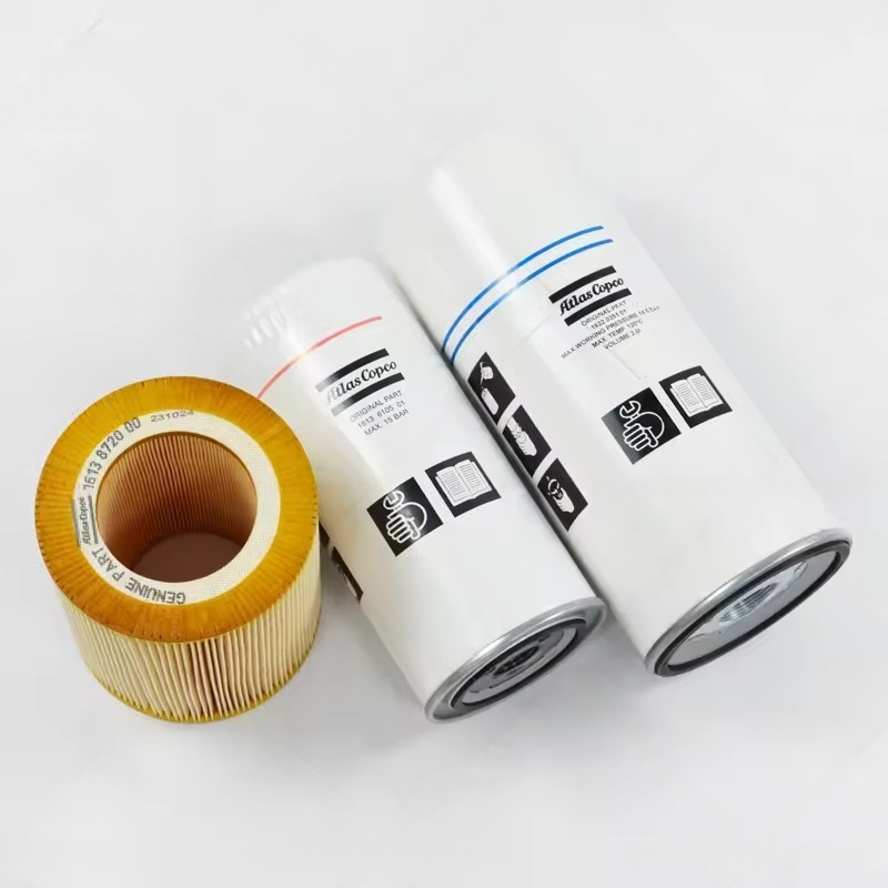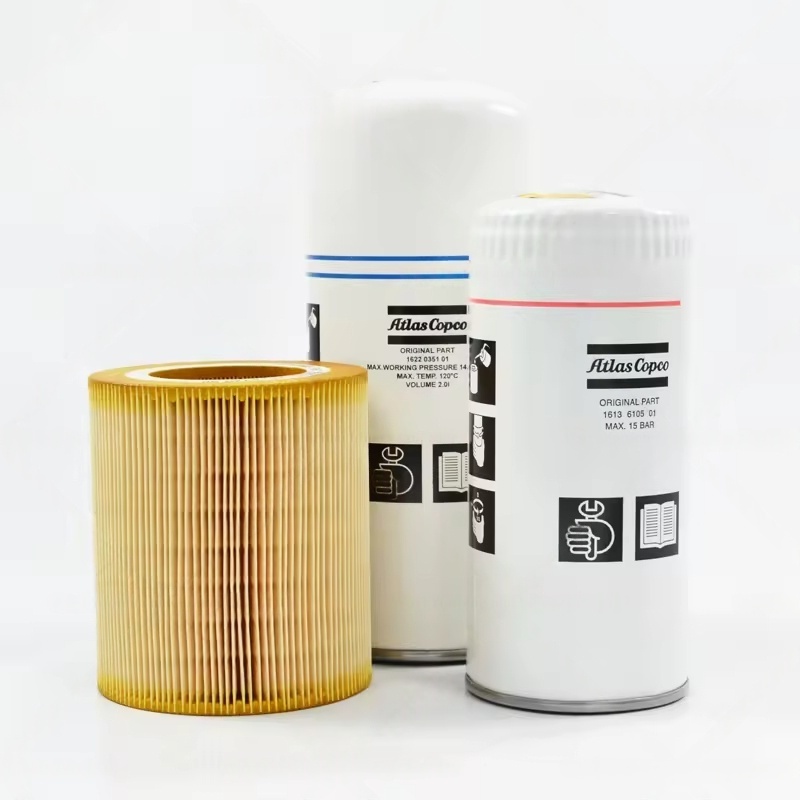 एयर फिल्टर घटक: एयर कंप्रेसर में प्रवेश करने वाले वायुमंडल में धूल और कणों को फिल्टर (आमतौर पर 1-5 माइक्रोन की निस्पंदन सटीकता के साथ), अशुद्धियों को संपीड़न कक्ष में प्रवेश करने से रोकना और रोटर और बीयरिंग जैसे सटीक घटकों के पहनने से बचने के लिए, बाद में तेल-जीएएस सेपरेशन सिस्टम पर बोझ को कम करना।