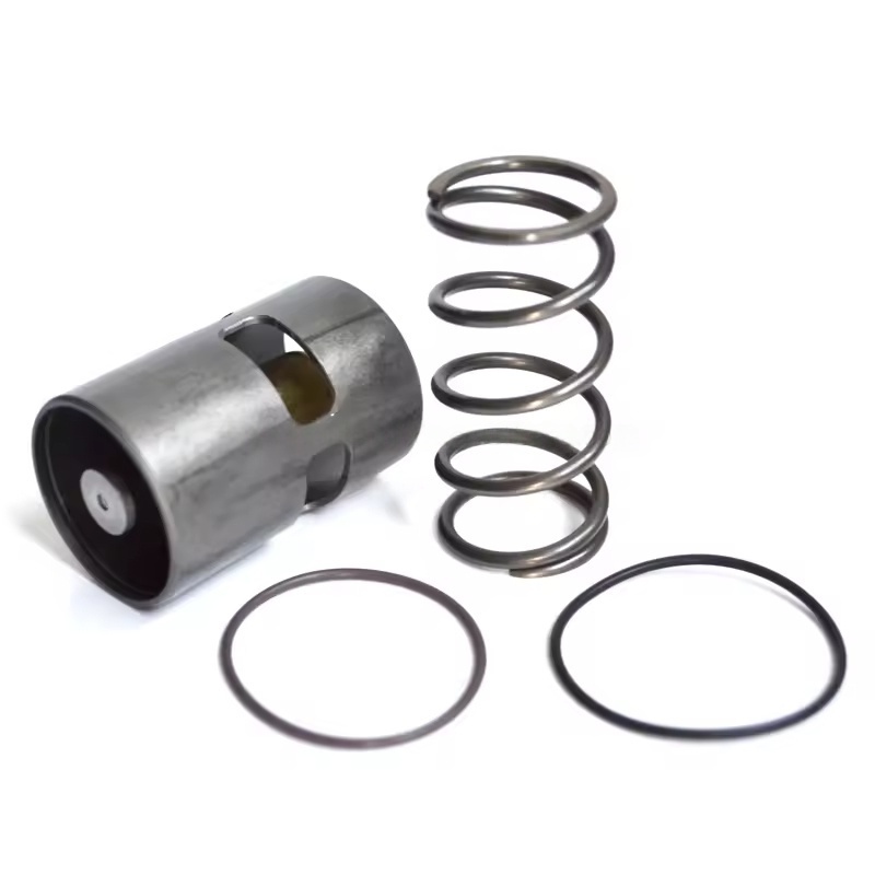 तापमान नियंत्रण वाल्व हवा के कंप्रेसर में चिकनाई तेल या संपीड़ित हवा के तापमान को संवेदना करता है और यह सुनिश्चित करने के लिए कि इष्टतम तापमान सीमा (आमतौर पर 70-95 डिग्री सेल्सियस, मॉडल पर निर्भर करता है) के भीतर संचालित होने के लिए कूलिंग सिस्टम (जैसे कूलिंग पानी या शीतलन हवा) के प्रवाह को स्वचालित रूप से नियंत्रित करता है।